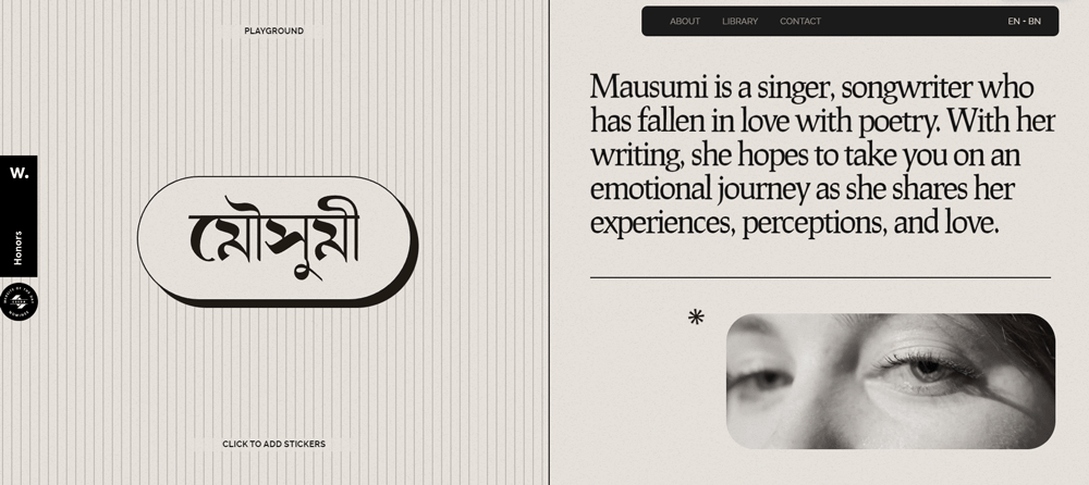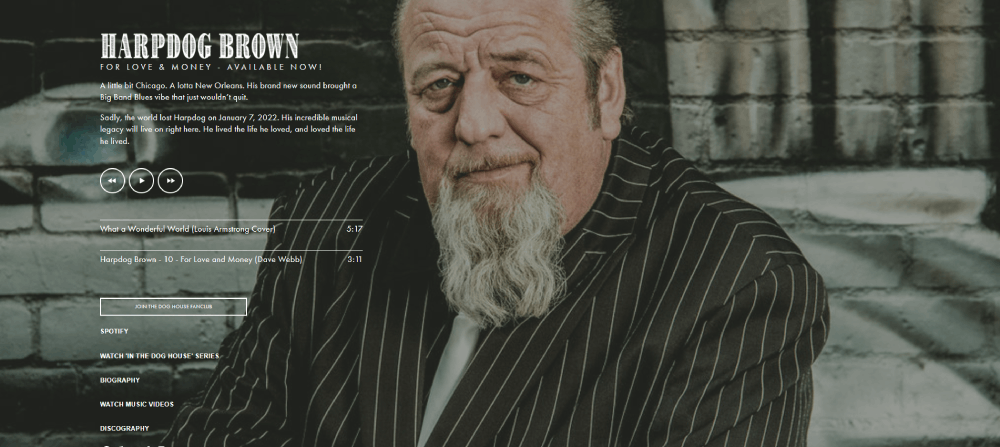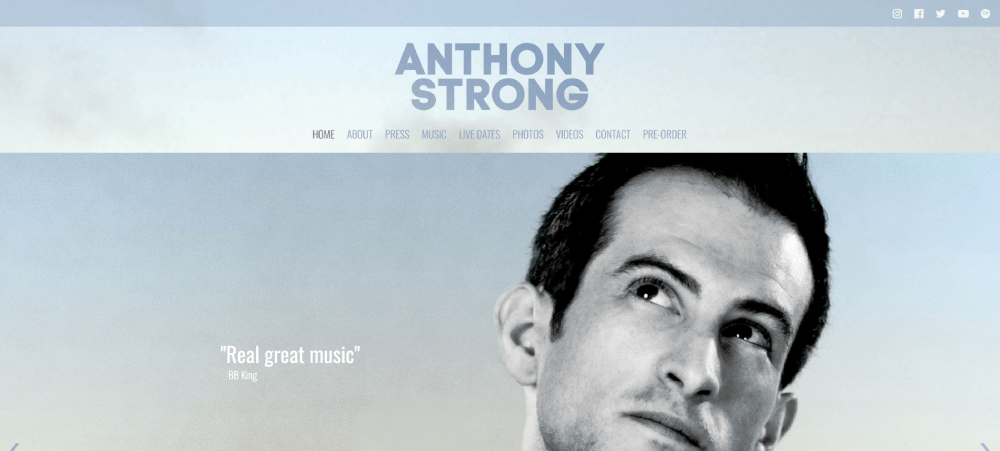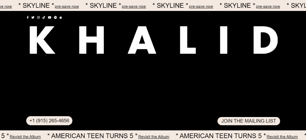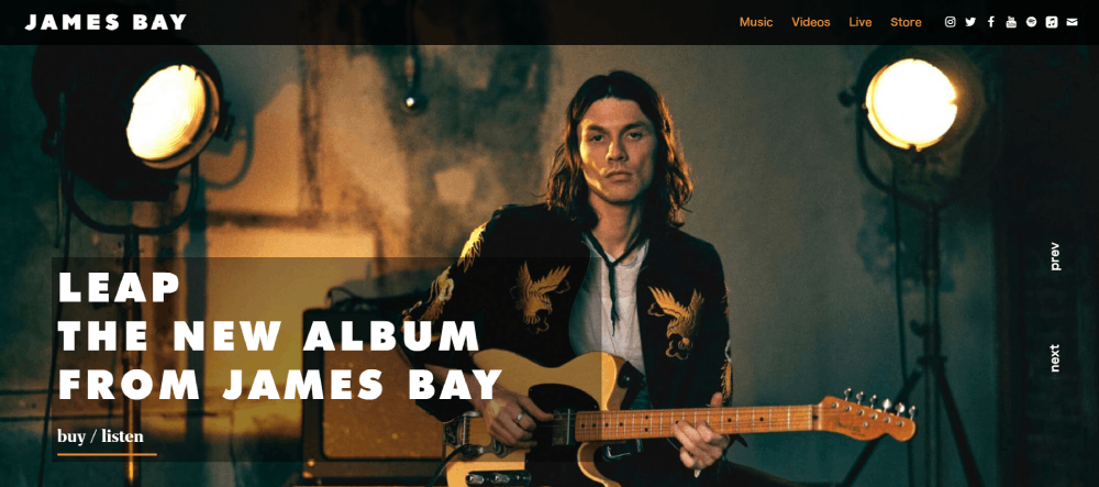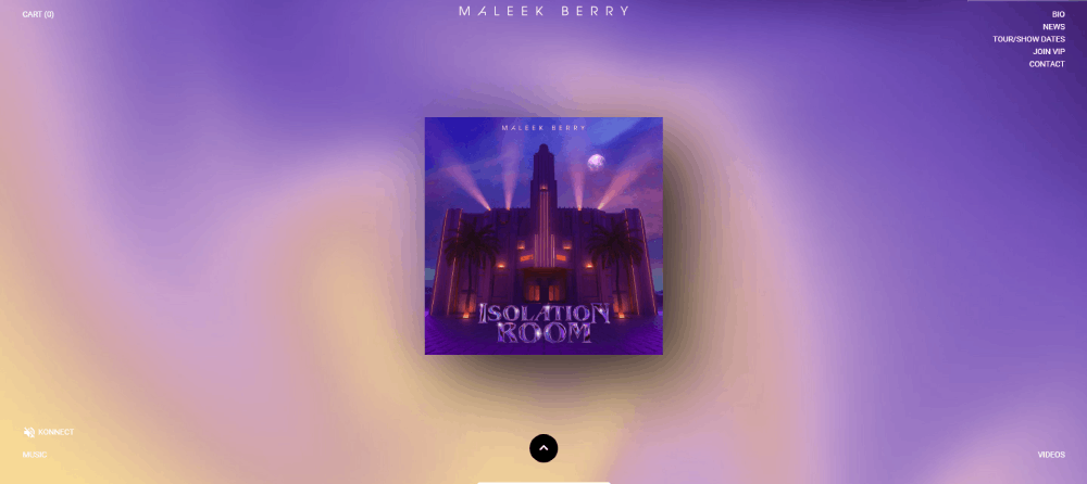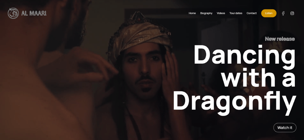Memorable websites for singers like this one captivate the crowd. Various music videos play in the background while you navigate the menu. Al Maari is the son of Syrian immigrants and his sound is a fusion of his cultural roots and hip hop. The website celebrates this in its design elements.