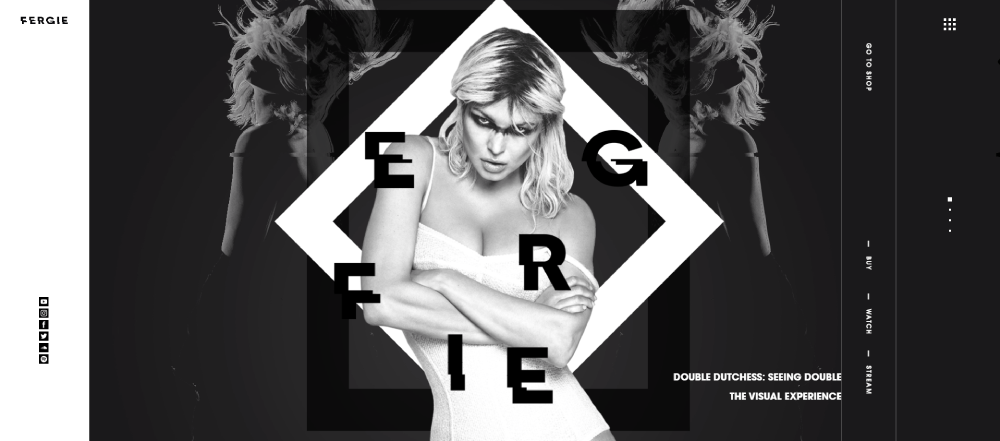 Good websites for bands and artists will use the right design tools and strategies to connect the artist with their latest work. And this is what we get with Fergie‘s official site. The opening page promotes the latest album Double Duchess with a double image and the words “Seeing Double”.