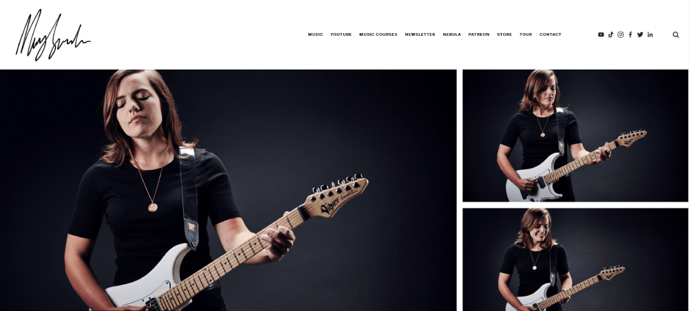 Hook 'em with something interactive, like a sleek photo gallery of your latest shows or behind-the-scenes shots. Mix in a dose of multimedia elements—think music vids, maybe a blog? Ensure those social media links are front and center, so fans can easily follow your journey.