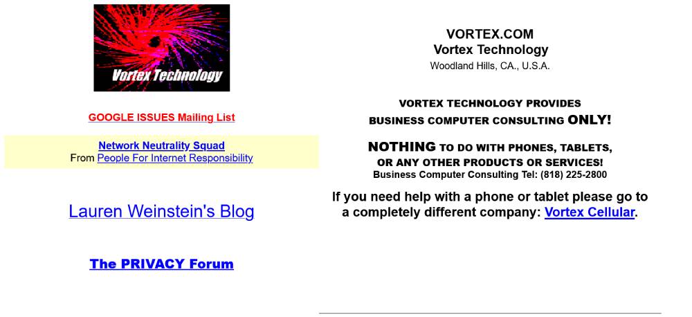 Vortex Technology’s logo and design are abysmally poor, resembling an outdated visual from the 80s. The low-quality, infrared-style logo and fundamentally poor font choice make the site unappealing and severely outdated.