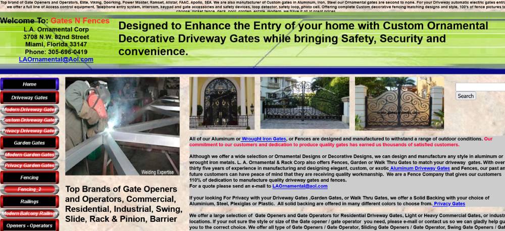 Gates N Fences suffers from excessively lengthy navigation menus and overabundant text. The cluttered design makes finding useful information cumbersome, detracting from the site’s usability despite offering valuable services.