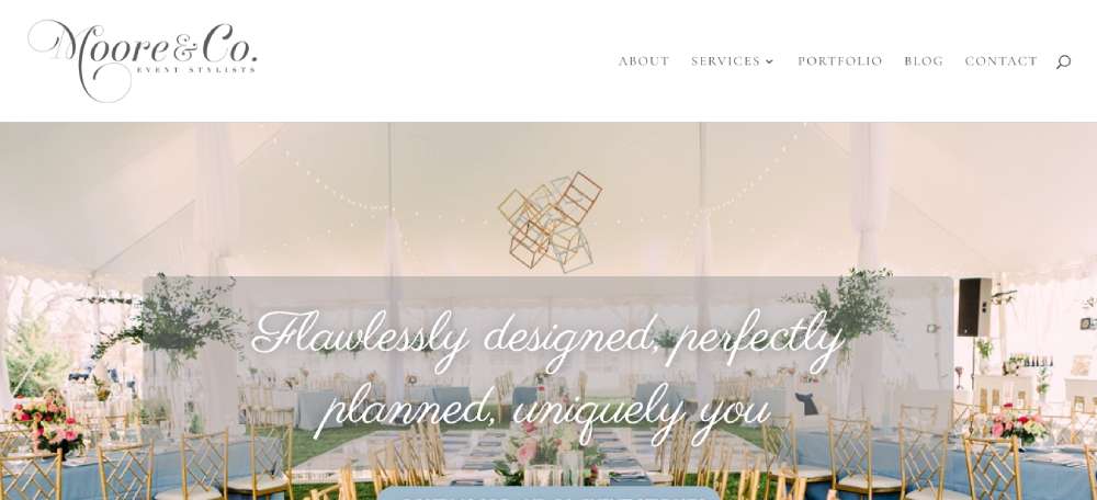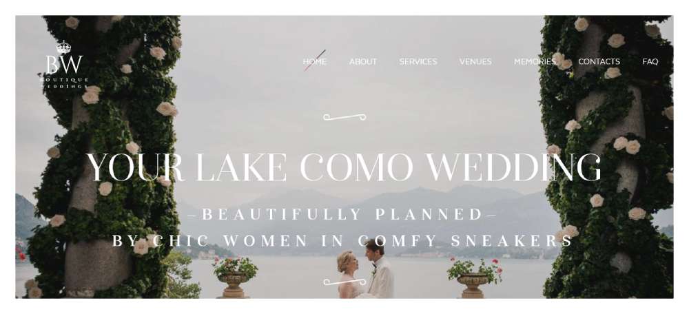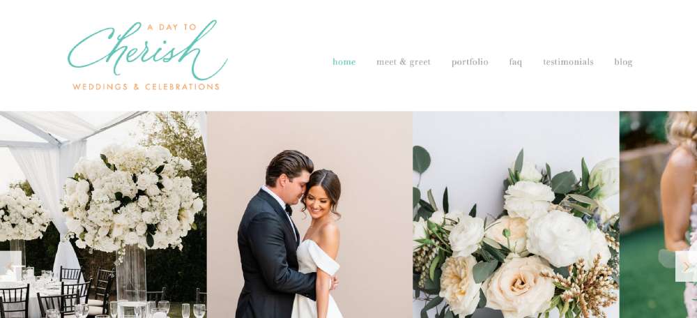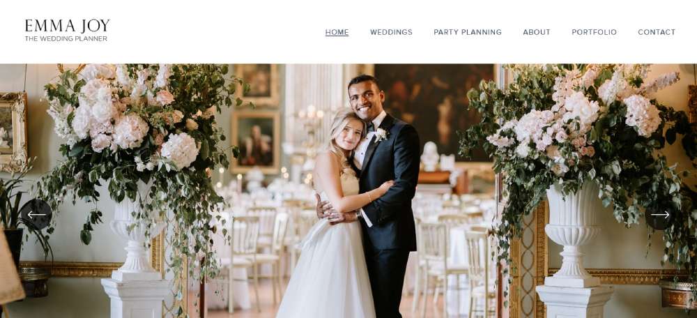 Stroll into Emma Joy's corner of the web and what do you get? Crystal clear simplicity. She greets you with visuals that are all class, a snapshot of a venue that says a thousand words, topped with a cherry of personal testimonial—wedding planner website design examples with that personal signature.
