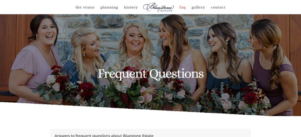 Bluestone Estate’s online estate—where wedding design meets digital sophistication. Each inch a tasteful exploration of space and imagery. And that custom typeface? It's the elegance of script on a wedding invite, stylishly echoing the grandeur of their event management expertise.