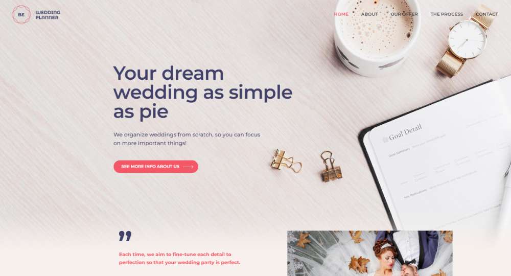 Absolutely adoring this one. The hero section? On point. It's the kind of online wedding planning tools showcase that proves how powerful visuals can elevate a wedding planner's message from mere whispers to confident vows.